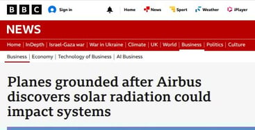 My visit had nothing to do with the recent AIRBUS hardware/software security incident, now fixed, pure coincidence. External disturbances are not new: during my PhD, I worked on light-induced bit flips, much like solar radiation effects in space. There are standards, countermeasures, and deep expertise, on both the hardware and software sides.